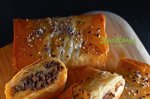 Cum se prepara aceste Plăcinte burger - Gust și savoare într-o rețetă rapidă: Încinge puțin ulei de măsline într-o tigaie și pune carnea la gătit. Las-o până se rumenește ușor. Condimentează cu sare, piper, boia și praf de usturoi. ...