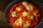 Shakshuka cu gorgonzola și salam chorizo - Rețeta savuroasă și rapidă