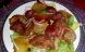 Am taiat pieptul de pui in 4 bucati, pe lung. L-am presarat cu sare si piper. Am taiat cascavalul in 4 bucati, l-am pus pe carne si am rulat, apoi am invelit ruloul in bacon. Rulourile mai mari le-am invelit in cate 2 felii de bacon. Am prins rulourile cu scobitori si le-am...