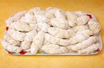 Se formeaza un aluat din ingredientele de mai si se pune la rece pentru 30 minute-1 ora. Se intinde apoi aluatul intr-o foaie subire si se taie patrate de 8-10 cm. Fiecare patrat se taie pe diagonala formand astfel doua triungiuri. Se umplu cornuletele dupa plac cu gem sau rahat si se ruleaza....