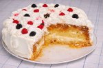 Crema: Laptele,frisca,esenta vanilie,zaharul(60 de grame) le amesteci si le fierbi.Cind fierb usor presari amidonul pe deasupra amestecind bine (nu pe foc) apoi lasi la racit.Cind e caldut se pune untul si se amesteca bine sa se topeasca.Bananele se zdrobesc,se uda cu zeama de lamiie si se...