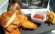 Pieptul de pui il taiem in fasii lungi pe care le stropim cu zeama de lamaie si le condimentam cu sare, piper, boia de ardei, apoi le trecem prin faina si le prajim in unt si ulei de masline.